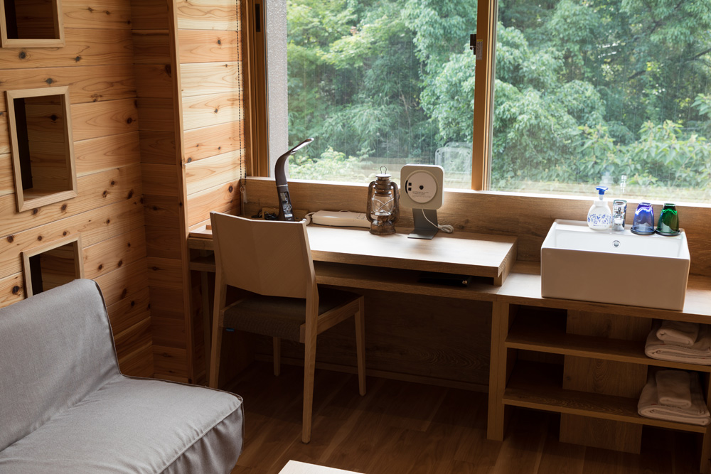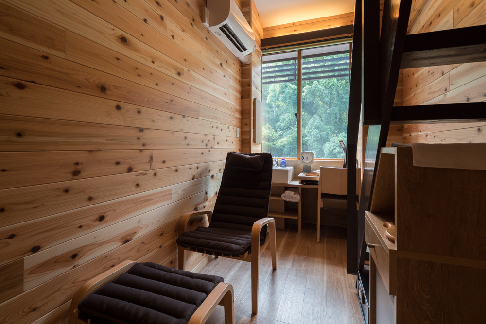 宮島の自然や山々をイメージした山の別荘風のお部屋です。