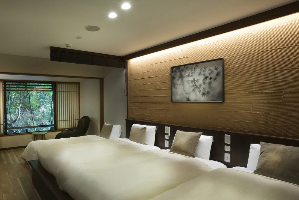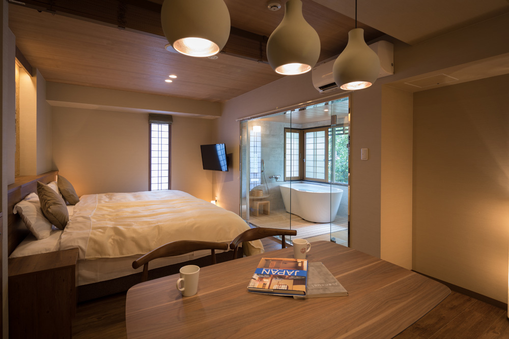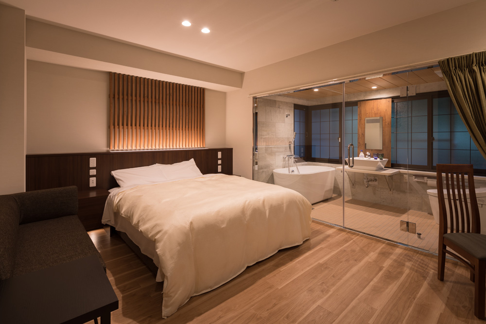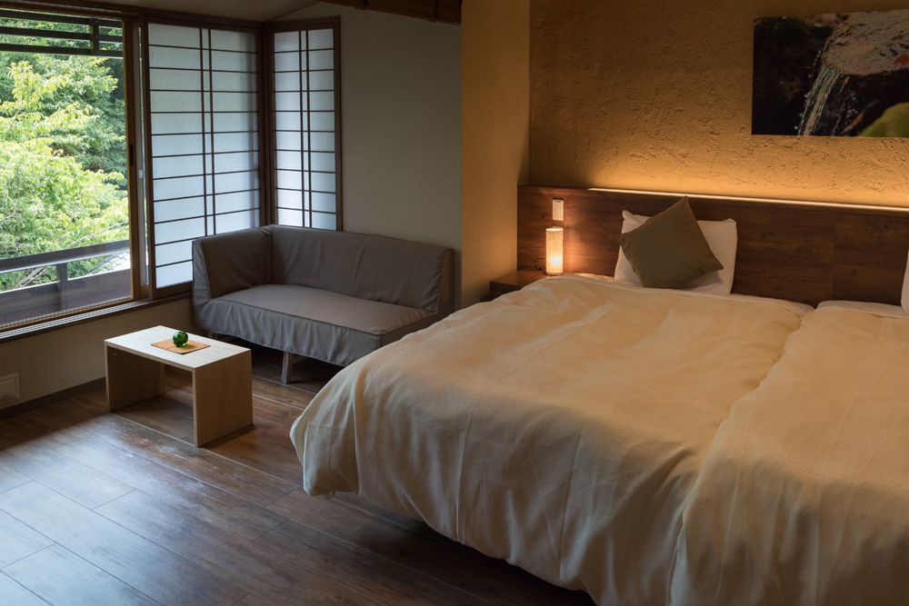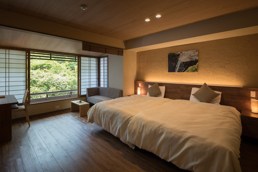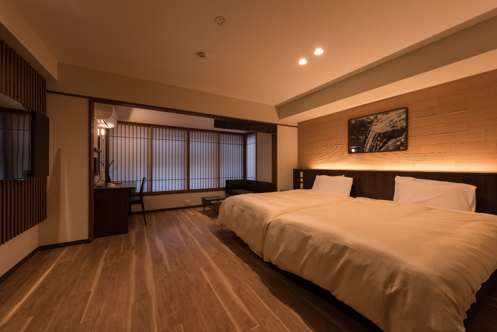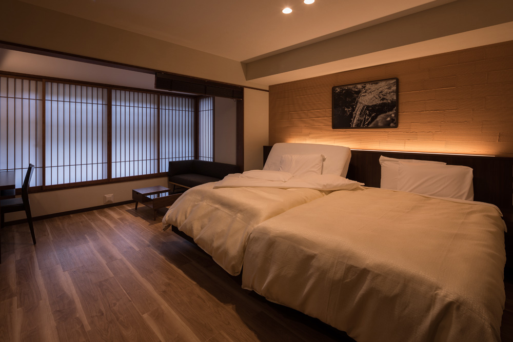 上質でシンプルな様々なインテリアデザインの客室は、何度泊まっても楽しめます。お部屋はすべて靴を脱いで入室していただきます。
