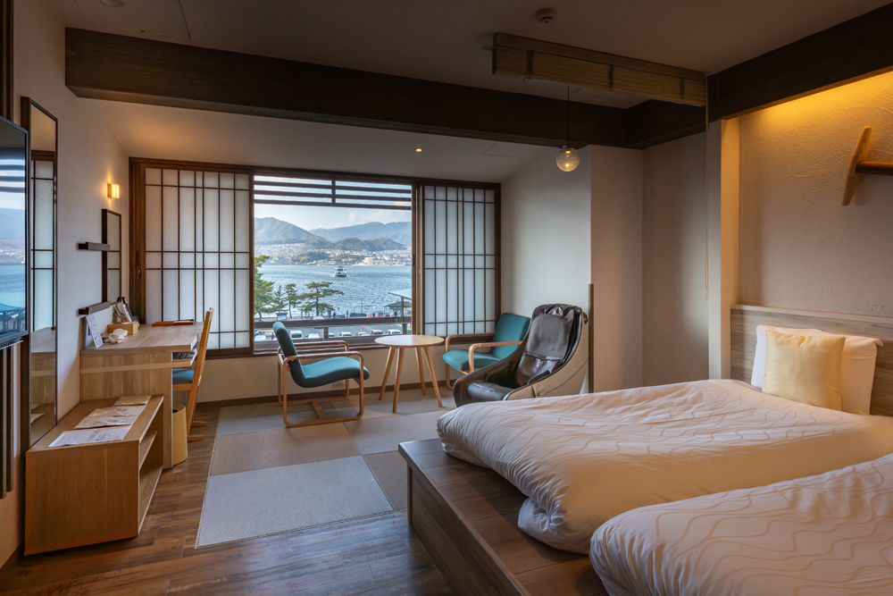 宮島の自然や瀬戸内海の穏やかな海をイメージしたお部屋です。
